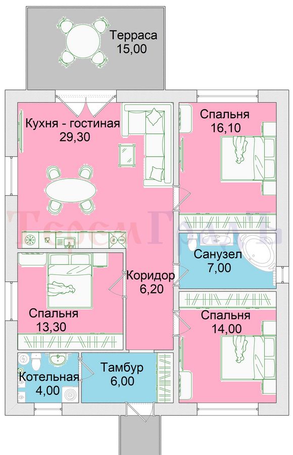 ОТДЕЛ ПРОДАЖ ЗАСТРОЙЩИКА предлагает КОТТЕДЖ, ЦЕНА с ЗЕМЕЛЬНЫМ УЧАСТКОМ, с чистовой отделкой, находится в КП Гармония, ул. 19-10. Коттедж состоит из кухни-гостиной - 29 кв.м, 3 (трёх) спален - 16,1; 14,0 и 13,3 кв.м., и вспомогательных помещений: холла, коридора, санузла и второго малого санузла, включающего в себя котельную. Высота от пола до потолка 3 м. Все материалы и комплектующие в доме высокого заводского качества! ВАЖНО: мы указываем фактическую площадь дома по нормативам БТИ! КОМИССИЯ ДЛЯ ПОКУПАТЕЛЯ - 0% !!! ДЛЯ АГЕНТОВ ОСОБЫЕ УСЛОВИЯ !!! ПАРАМЕТРЫ КОНСТРУКТИВА: * Фундамент - ленточный на буронабивных сваях * Цоколь – высокий, утепленный, перекрытый заводскими ж/б плитами * Cтены – автоклавный газобетон завода «Сибит» - 300 мм., с армированием через каждые 3 ряда, утепление - базальтовая плита * Перемычки оконные и дверные завода "Сибит" * Армопояс – выполнен по проекту между стенами и кровлей (распределяет нагрузку) утеплен экструдированным пенополистиролом * Кровля – ондулин "Черепица", чердачное перекрытие утеплено базальтовой плитой * Вентиляция – приточно-вытяжная (есть КиВы), выполнена в кухне-гостиной, с/у, котельной с выходом на кровлю * Окна кашированные, пакет шестикамерный (гарантия 3 года), высота проема 1,75м., внутренняя и внешняя отделка (подоконники, откосы) * Фасад – высококачественный облицовочный кирпич * Отмостка – бетонная, армированная утепленная с щебеночной отсыпкой * Система водостока из металла, смонтирована по карнизам и углам здания * Терраса –15 кв.м. с выходом из гостиной. * Крыльцо – деревянное, под ним-бетонированная площадка * Входная дверь – стальная, утепленная, с терморазрывом КОММУНИКАЦИИ: * Отопление:ГАЗОВОЕ (двухконтурный котел NAVIEN) с системой радиаторов с учетом климата региона, система теплого пола * Электричество: монтаж проводки выполнен по проекту, установлены автоматы, счетчик, розетки, выключатели, смонтировано заземление * Водоснабжение: ввод в дом, разводка труб до санфаянса, горячая вода от газового котла * Канализация: автономная - септик 5 куб., монтаж труб внутри дома ВНУТРЕННЯЯ ОТДЕЛКА: * Пол: полусухая механизированная стяжка по маякам, финишная затирка пола * Потолок:подшит ОСП-3 * Стены: финишная шпатлевка по маякам под обои ИНФРАСТРУКТУРА: На территории коттеджного поселка: уборка снега и вывоз мусора, озеленение и благоустройство территории, контроль за пожарной безопасностью, закрытая территория, КПП, охрана, видеонаблюдение. Остановка общественного транспорта в пешей доступности. В нескольких минутах езды находится вся инфраструктура с. Каменка: отделения банков, супермаркеты, больница, салоны красоты, фитнес-клуб и др., школа №44, детский сад №509, для самых маленьких – рядом с коттеджным поселком есть частный детский сад. На территории поселка оборудованы детский игровой городок, зоны отдыха и workout. Коттедж выстроен по проекту. Застройщик предоставляет 5 летнюю гарантию на дом.