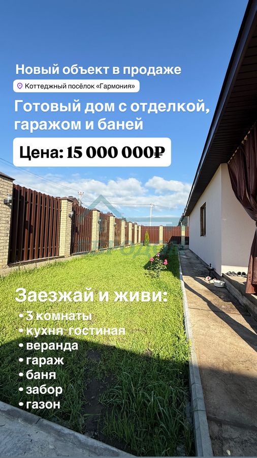 Готовый дом с ремонтом, гаражом, баней и благоустройством. Подходит под сельскую ипотеку 3%. В продаже дом 2023 года постройки. Общая площадь 150 кв.м. Участок 7 соток. Материал стен - сибит, утеплитель, штукатурка. Отопление - газовое. Канализация - септик. Водоснабжение - скважина. Электричество - есть. Дом состоит из 3 комнат, кухни-гостиной, санузла, котельной. Также имеется терраса, гараж, забор с откатными воротами, баня. Баня состоит из кухни-гостиной, санузла, душа, парилки, хоз блок. Выполнено благоустройство участка. В доме необходимо выполнить небольшую отделку стен в двух комнатах, ремонт в санузле в процессе. Звоните, приезжайте смотреть дом своими глазами. Вам он точно понравится!